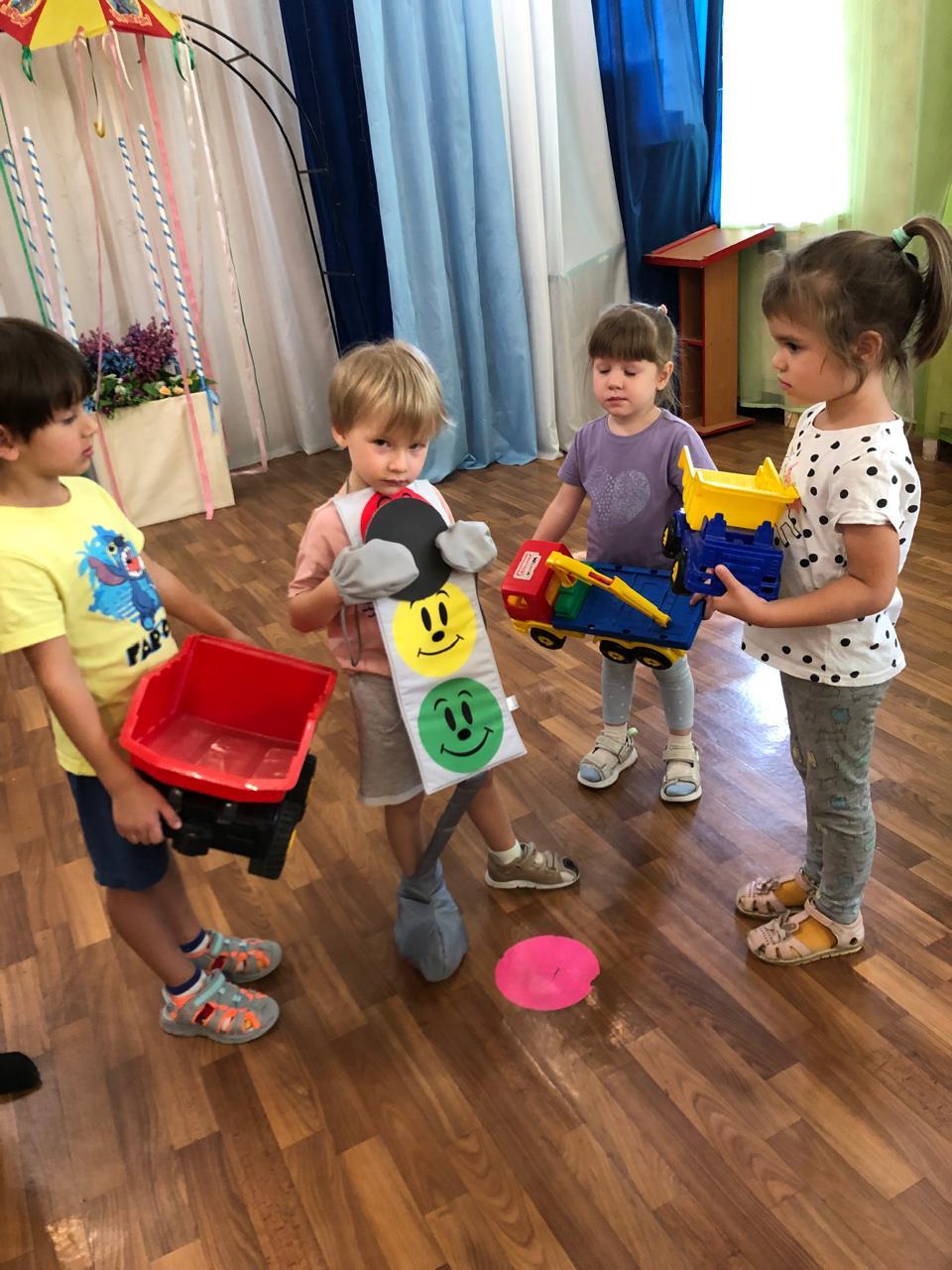 - Подвижные игры «Воробышки и автомобиль», «Пешеходы и автомобили», «Светофор».
