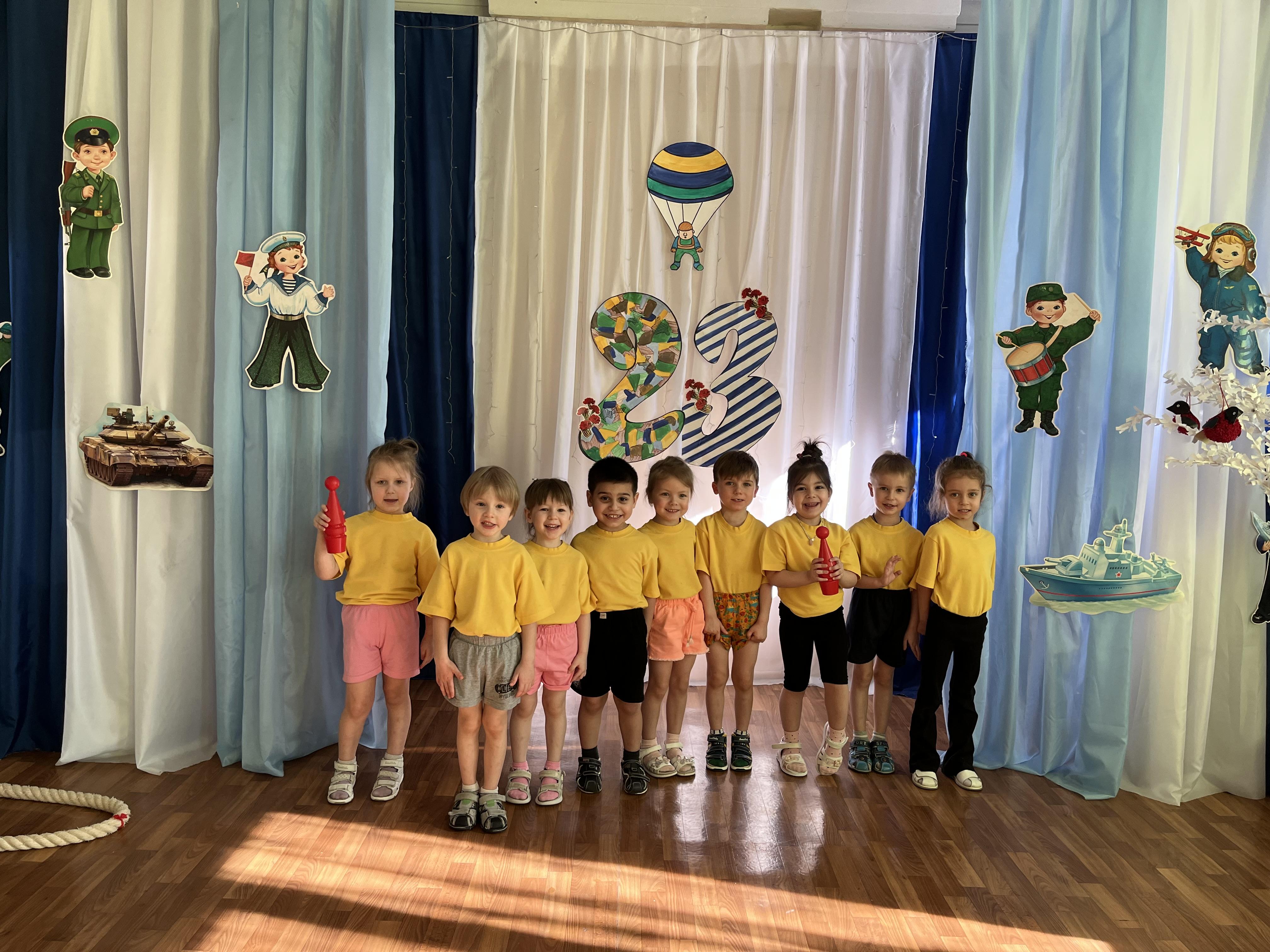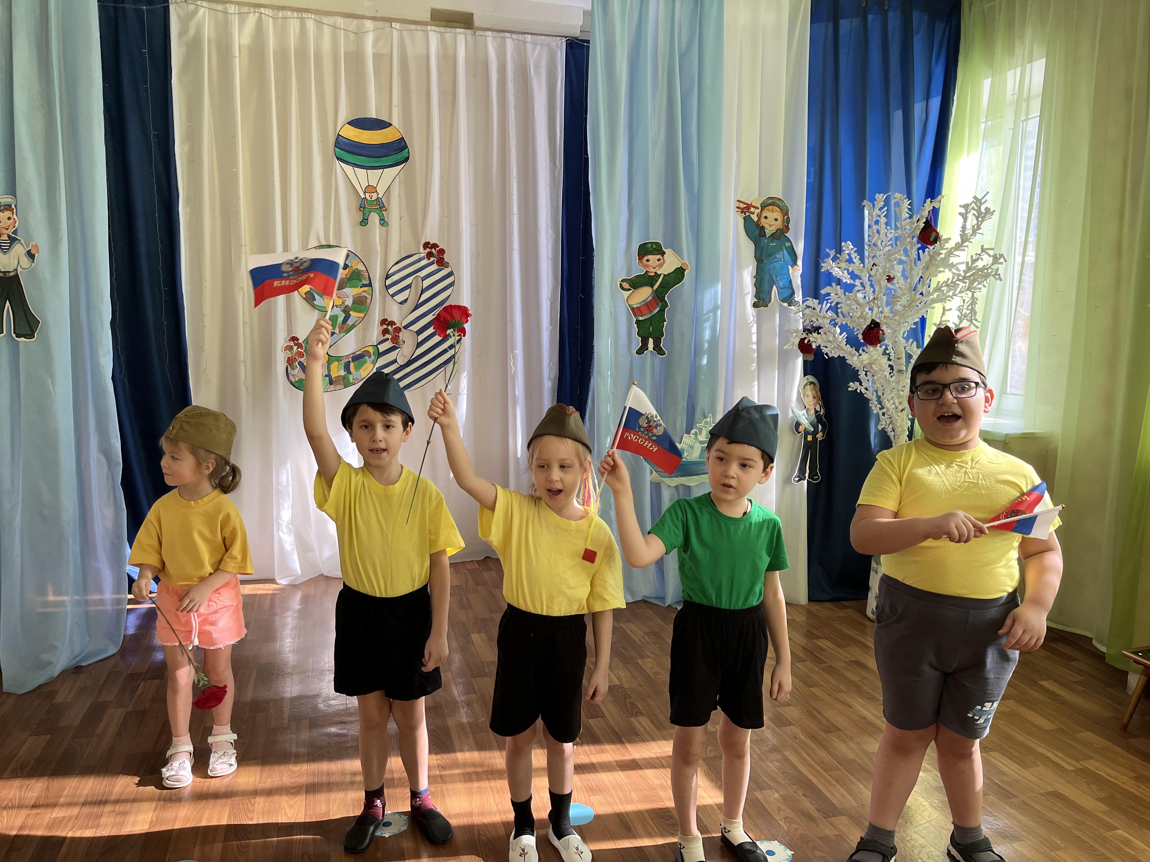В преддверии празднования Дня защитника Отечества в нашей дошкольной образовательной организации в течение недели воспитатели провели с детьми тематические беседы, занятия, организовали фотовыставки "Я и мой папа". 17 февраля в 10-00 часов сотрудником ГКУКВО Астраханцевой И.П. для старших дошкольников был проведен литературный час «Есть такая профессия - Родину защищать!» Также педагоги организовали и провели музыкально- спортивный праздник "Мальчишка- будущий солдат!" с детьми старшей и средней групп. В конце недели воспитатели провели во всех группах занятия «Подарок на 23 февраля», который дети подарили своим папам и дедушкам и всех мужчин поздравили с Праздником!