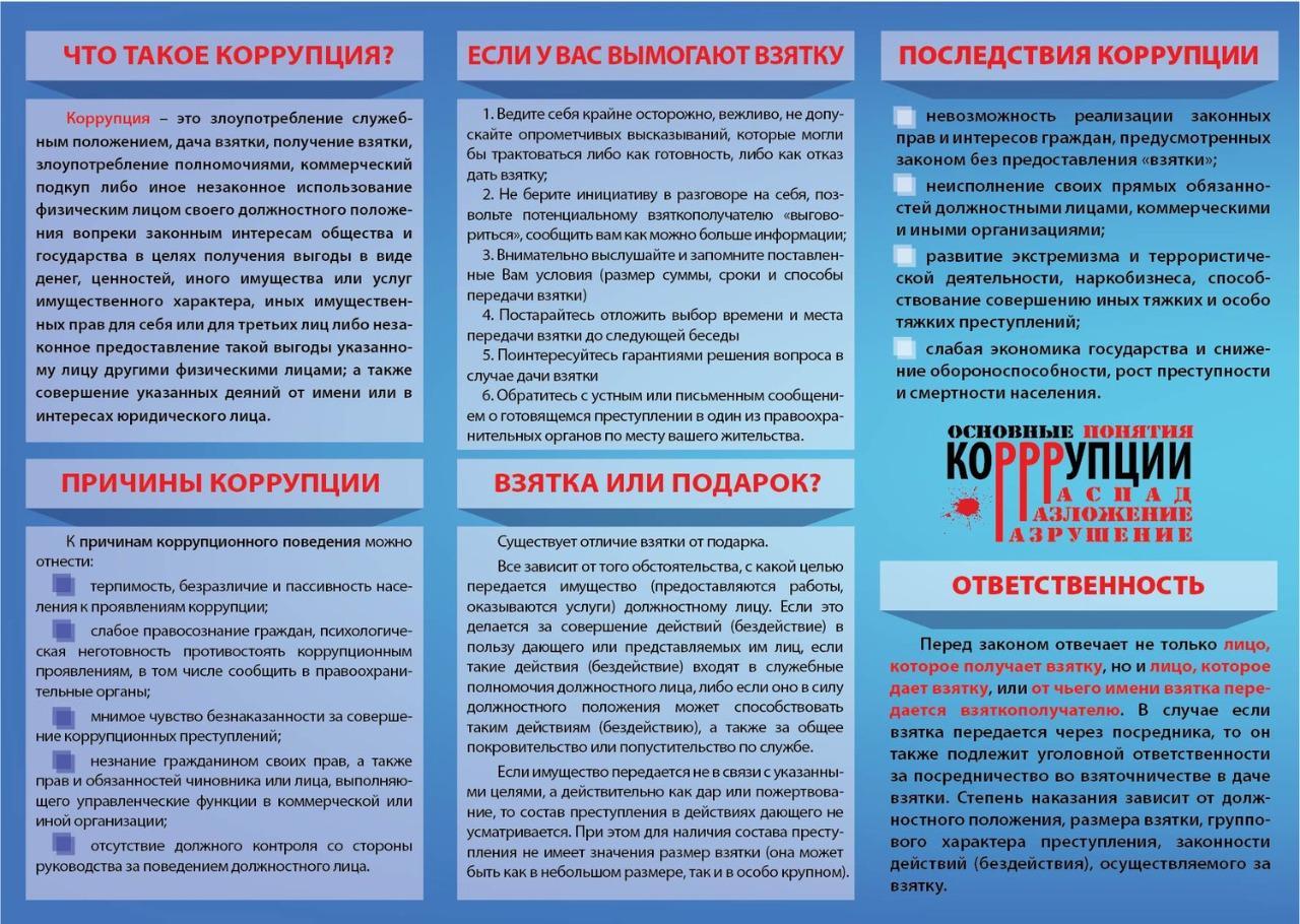- Изготовление памяток, листовок и буклетов по противодействию коррупции «Что